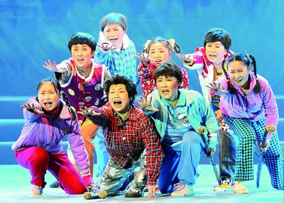 江苏金坛华罗庚艺术剧团的演员在表演儿童剧《留守小孩》。