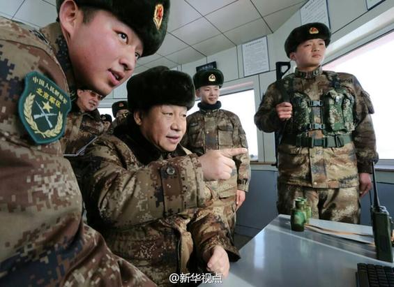 据新华社“新华视点”微博报道,1月26日上午,习近平来到内蒙古边防某团三角山哨所,看望正在执勤的战士。他登上58级陡峭的台阶,进入哨所二楼观察室。习近平同执勤哨兵一一握手,并动情地对战士们说:“今天,我和你们一起执勤站岗。”