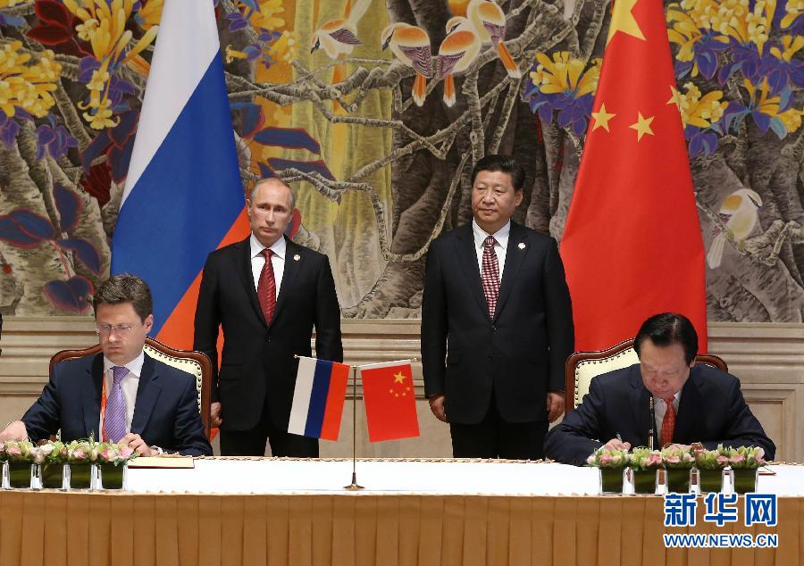 国家主席习近平和俄罗斯总统普京21日在上海共同见证中俄两国政府《中俄东线天然气合作项目备忘录》、中国石油天然气集团公司和俄罗斯天然气工业股份公司《中俄东线供气购销合同》的签署。