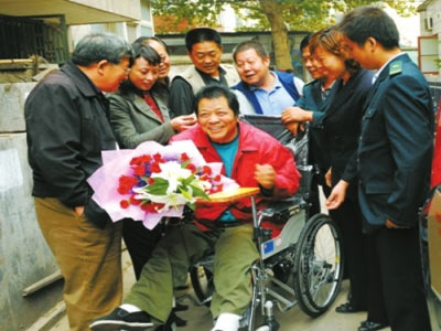 当不幸开始笼罩这个家庭的时候,大院里的邻居们就纷纷伸出援助之手,一个自发形成的爱心群体自觉承担起照顾他的义务——洗澡、理发、上车下床……生病时,大家不分昼夜轮流在床前守候,至今38年从没间断。