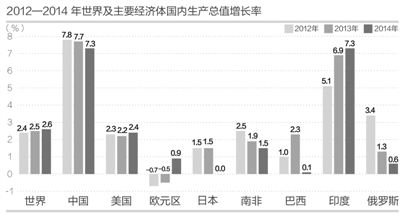 五年攻坚克难,经济实力迅猛增强。“十二五”期间,我们妥善应对国际金融危机持续影响等重大风险挑战,积极适应和引领经济发展新常态,不断创新宏观调控方式,推动形成经济结构优化、发展动力转换、发展方式转变加快的良好态势。2011—2014年,国内生产总值从48.4万亿元增至63.6万亿元,年均增长超过8%,经济总量稳居世界第二位,跻身“10万亿美元俱乐部”,人均国内生产总值由36018元提高到46629元,年均增长超过7.5%。经济结构明显改善,第三产业增加值占国内生产总值比重超过第二产业,基础设施水平全面跃升,农业连续增产,常住人口城镇化率达到55%,一批重大科技成果达到世界先进水平,经济发展成就斐然。