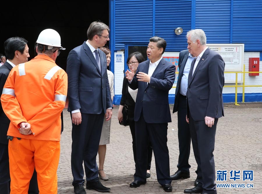 6月19日上午,国家主席习近平在贝尔格莱德参观河钢集团塞尔维亚斯梅代雷沃钢厂。