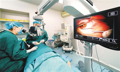 “行知中国”助力关爱西部青少年眼健康。图为兰州普瑞眼科医院医生在手术室为高三学生罗进荣实施眼科手术。